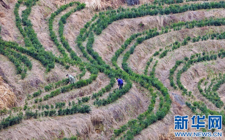 村民在茶葉基地除草。新華網發 鄧龍華攝