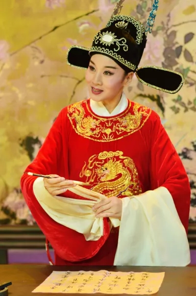提到黃梅戲,經(jīng)典名劇《女駙馬》是不可不提的重要作品。這部劇是黃梅戲最為著名的代表之一,塑造劇中“馮素珍”這個(gè)角色,需要表演者具備極強(qiáng)的專(zhuān)業(yè)功底與豐富的表演經(jīng)驗(yàn)。尤其是女扮男裝中狀元的這一場(chǎng)戲,演員要時(shí)刻注意心境的轉(zhuǎn)換,旦行與生行的靈活切換,采用戲曲程式化的動(dòng)作把人物內(nèi)心戲進(jìn)行外化表現(xiàn),讓觀眾跟隨演員的情緒而動(dòng)。