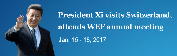 Xi arrived in Switzerland on Sunday for a four-day state visit and the WEF annual meeting, which is themed "Responsive and Responsible Leadership" this year. About 50 heads of state and 1,700 political, business, academic and media leaders from across the world attended the opening ceremony.