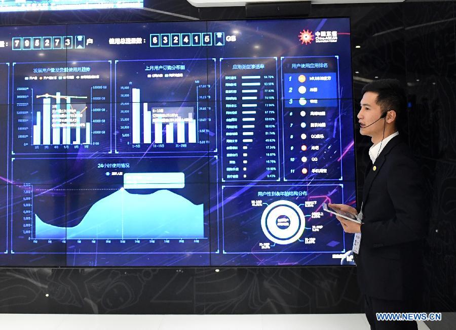 A staff introduces at China-ASEAN Information Port in south China's Guangxi Zhuang Autonomous Region, Jan. 15, 2018. By making full use of its geographical location and the potential of coastlines and border areas, Guangxi capitalized on its advantages and played a bigger role in the Belt and Road Initiative. Through ports and the Beibu Gulf Economic Zone, the trade cooperation between Guangxi and ASEAN countries gained great prospects. (Xinhua/Lu Boan)