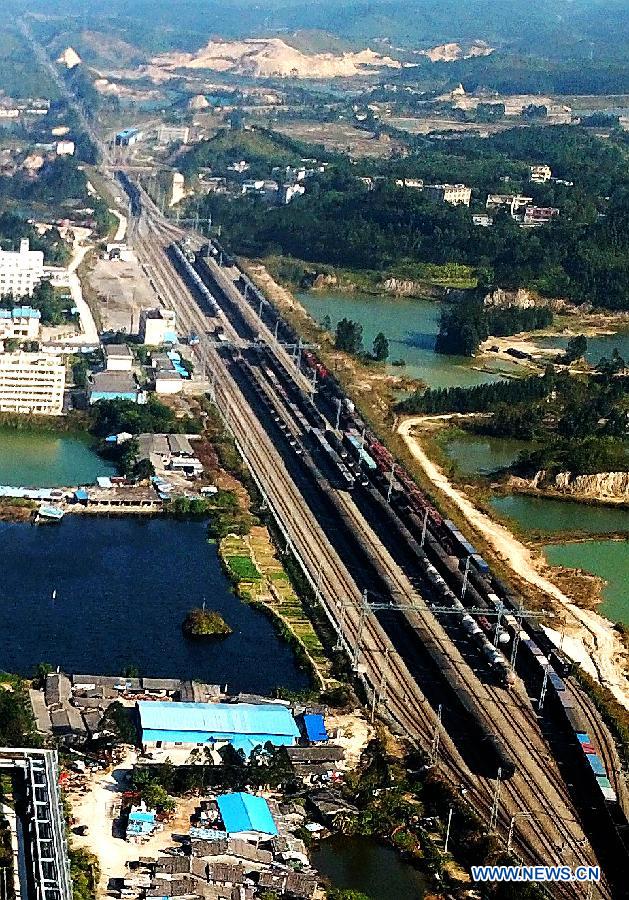 Photo taken on Dec.19, 2017 shows a railway station attached to Qinzhou port in south China's Guangxi Zhuang Autonomous Region. By making full use of its geographical location and the potential of coastlines and border areas, Guangxi capitalized on its advantages and played a bigger role in the Belt and Road Initiative. Through ports and the Beibu Gulf Economic Zone, the trade cooperation between Guangxi and ASEAN countries gained great prospects. (Xinhua/Zhang Ailin)