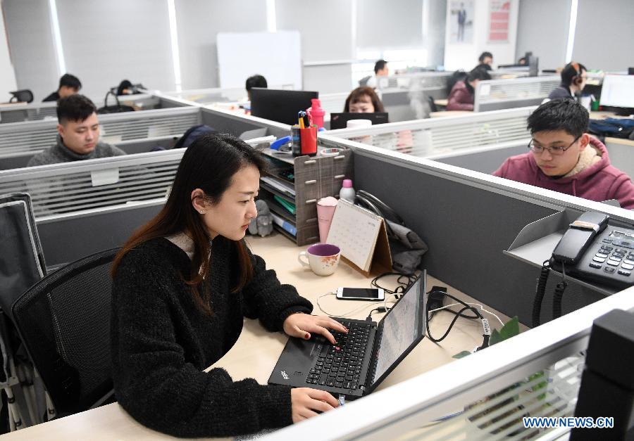 Staffs work at China-ASEAN Information Port in south China's Guangxi Zhuang Autonomous Region, Jan. 15, 2018. By making full use of its geographical location and the potential of coastlines and border areas, Guangxi capitalized on its advantages and played a bigger role in the Belt and Road Initiative. Through ports and the Beibu Gulf Economic Zone, the trade cooperation between Guangxi and ASEAN countries gained great prospects. (Xinhua/Lu Boan)