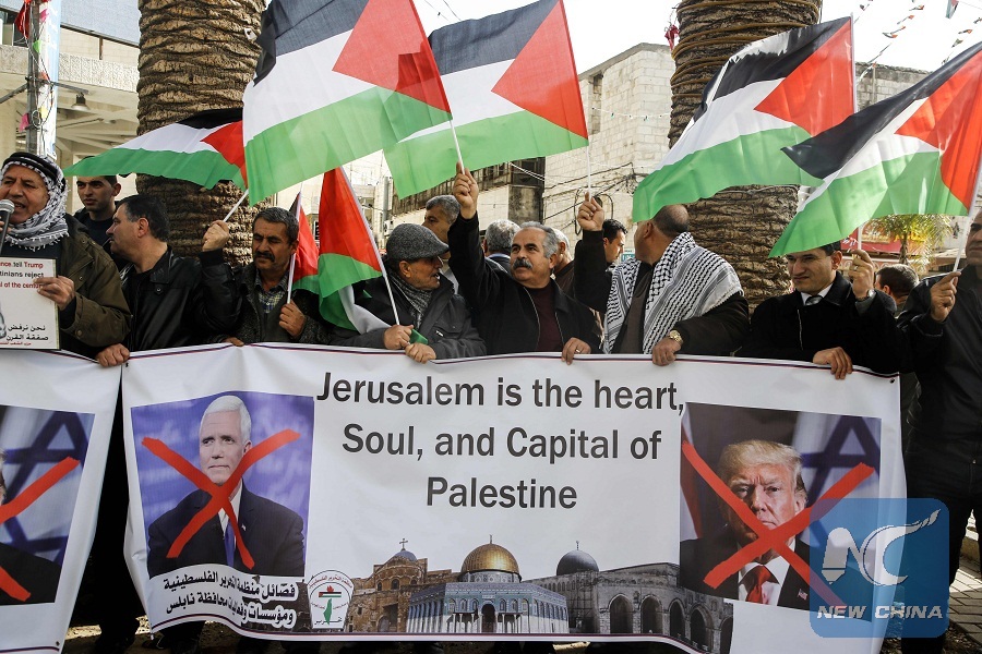 RAMALLAH, Jan. 22 (Xinhua) -- An official of Palestine Liberation Organization (PLO) slammed Monday the statement of U.S. Vice President Mike Pence who is currently visiting Israel.