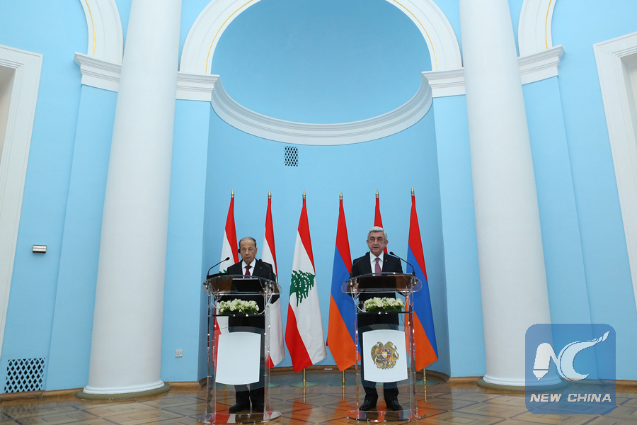 YEREVAN, Feb. 22 (Xinhua) -- Armenian President Serzh Sargsyan met here with his Lebanese counterpart, Michel Aoun, on Thursday, with both sides pledging to enhance bilateral cooperation.