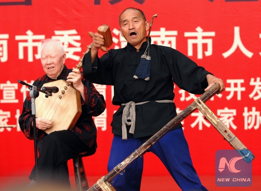 File Photo: Artists perform "Huayin Laoqiang", a traditional Chinese opera, outside the Shaanxi Province Art Museum in Xi'an, northwest China's Shaanxi Province, Aug. 9, 2011. (Xinhua/Li Yibo)