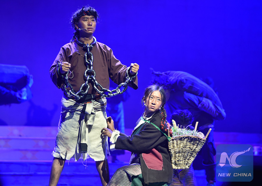 Local drama "The Tears of Serfs" depicts the tragic life of Tibetan serfs, March 26, 2018. (Xinhua/Chogo)