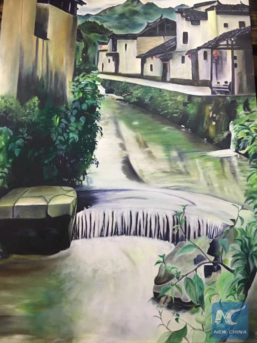 A painting drawn by Huang Yuqing shows the remote village of Jixia in Pingnan County, east China's Fujian Province. (Xinhua)