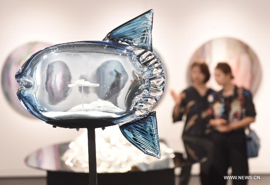People visit a graduation exhibition of undergraduates of Tsinghua University Academy of Arts and Design in Beijing, capital of China, June 12, 2018. More than 500 pieces (sets) of works were displayed at the exhibition. (Xinhua/Luo Xiaoguang)