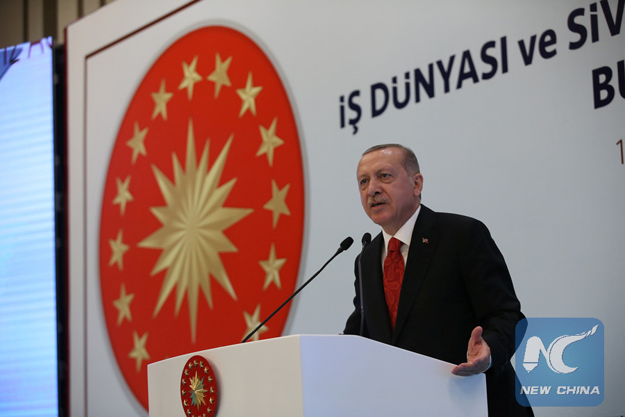 ANKARA, Aug. 12 (Xinhua) -- The plunge of Turkish lira is "a plot against Turkey" and the country will seek new partners and markets if the United States does not back down on its hostile policy, Turkish President Recep Tayyip Erdogan said on Sunday.