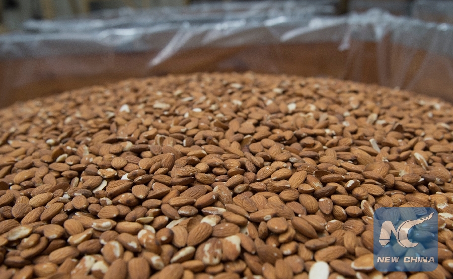 File Photo: Shelled almonds are seen at an almond processing plant in Modesto, California, the United States, on March 19, 2013. (Xinhua/Yang Lei)