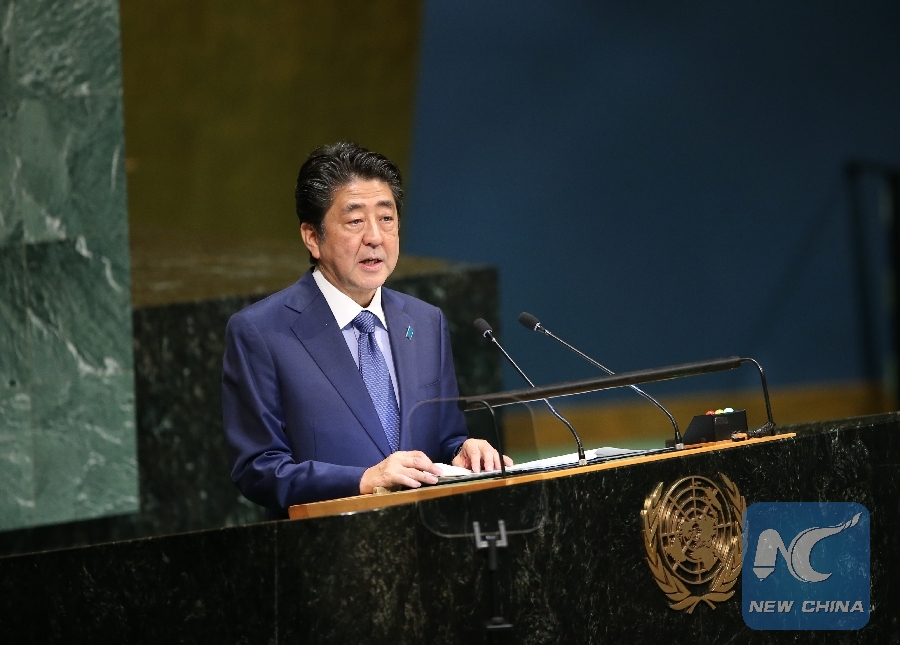 Japanese Prime Minister Shinzo Abe addresses the General Debate of the 73rd session of the United Nations General Assembly at the UN headquarters in New York, on Sept. 25, 2018. (Xinhua/Qin Lang)
