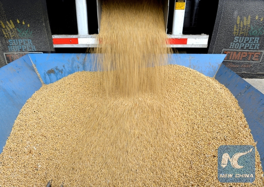 An incoming truckload of soybeans is unloaded at a farm in Fargo, North Dakota, U.S., Dec. 6, 2017. (Xinhua/REUTERS)