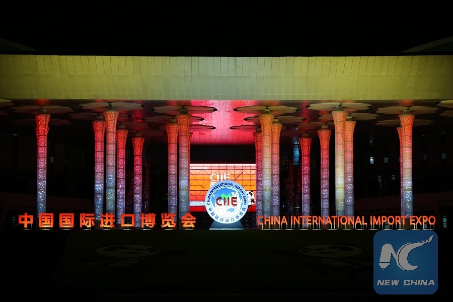Photo taken on Oct. 12, 2018 shows south square of the National Exhibition and Convention Center (Shanghai), main venue of the upcoming China InternationalImport Expo (CIIE), in Shanghai, east China. (Xinhua/Ding Ting)