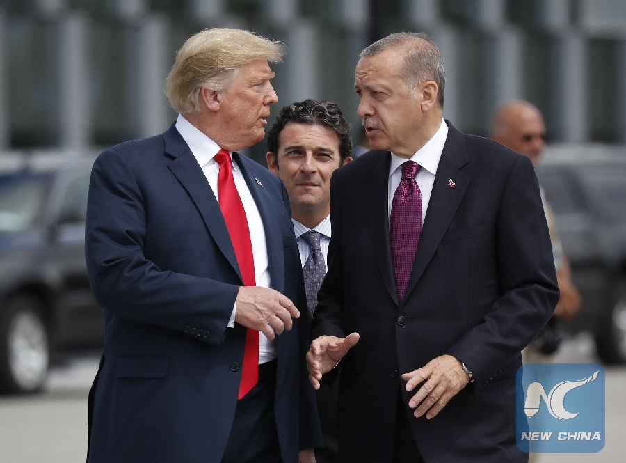 ANKARA, Nov. 1 (Xinhua) -- Turkey's President Recep Tayyip Erdogan and his U.S. counterpart Donald Trump on Thursday agreed by phone to take "constructive steps" toward strengthening ties, said Turkey's presidential press office.