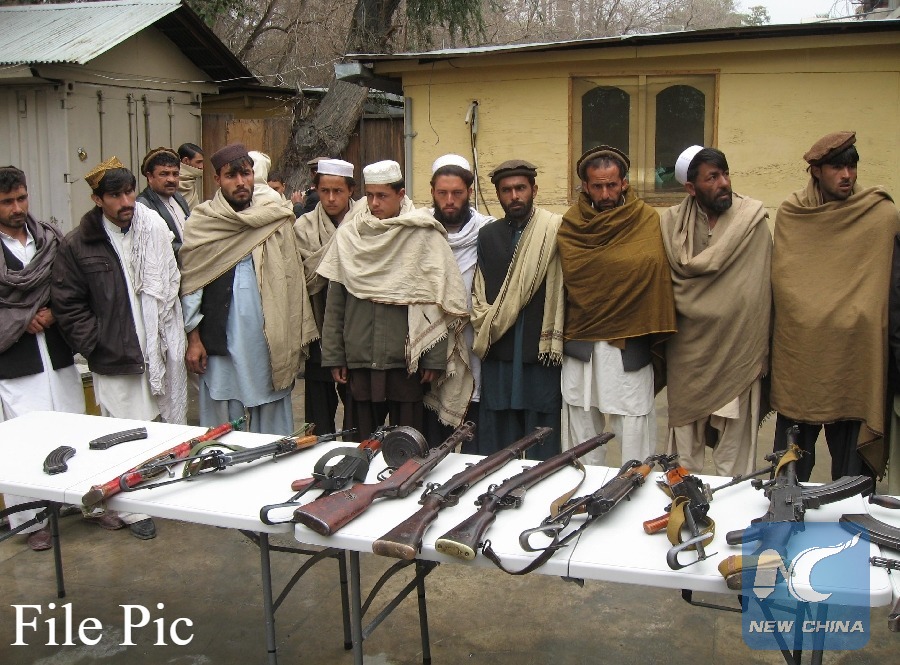 Taliban fighters attend a surrender ceremony in Nangarhar province, Afghanistan, on Jan. 22, 2012. (Xinhua File photo)