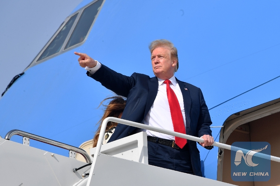 U.S. President Donald Trump and first lady Melania Trump arrive at Andrews Air Force Base April 18, 2019 in Maryland, the United States, prior to boarding Air Force One for departure to Florida where they will spend the Easter weekend. (AFP Photo)