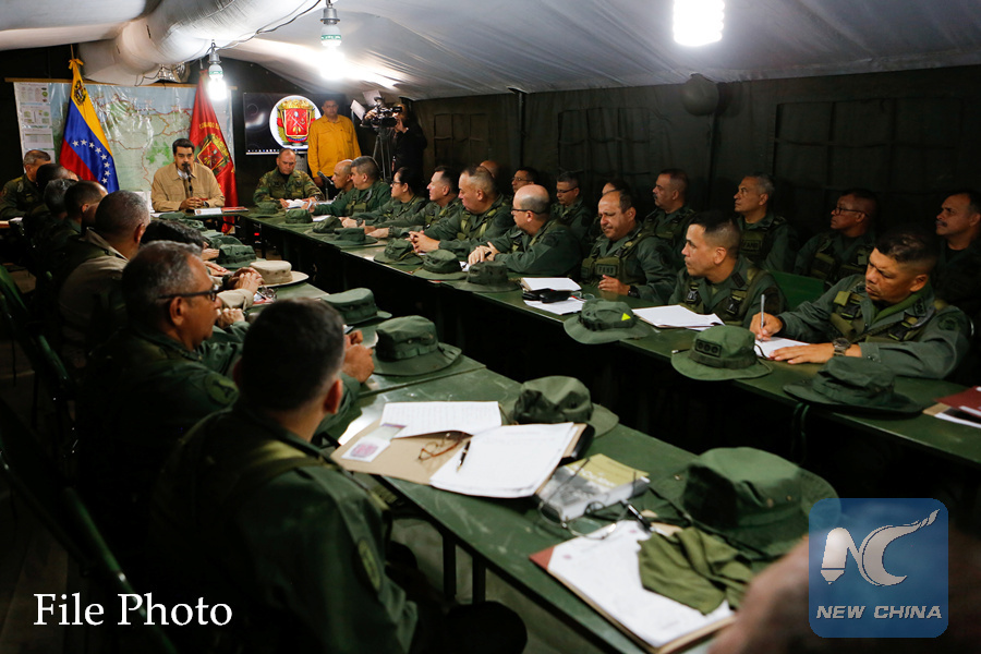 Venezuela's President Nicolas Maduro speaks with military commanders during a meeting, in Caracas, Venezuela June 3, 2019.