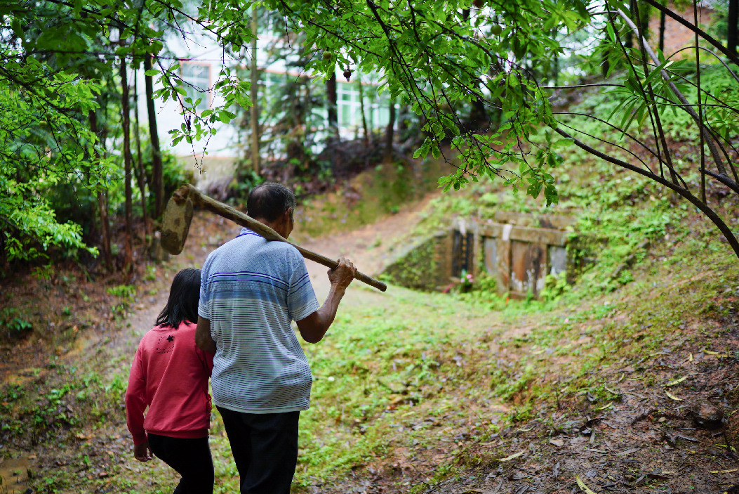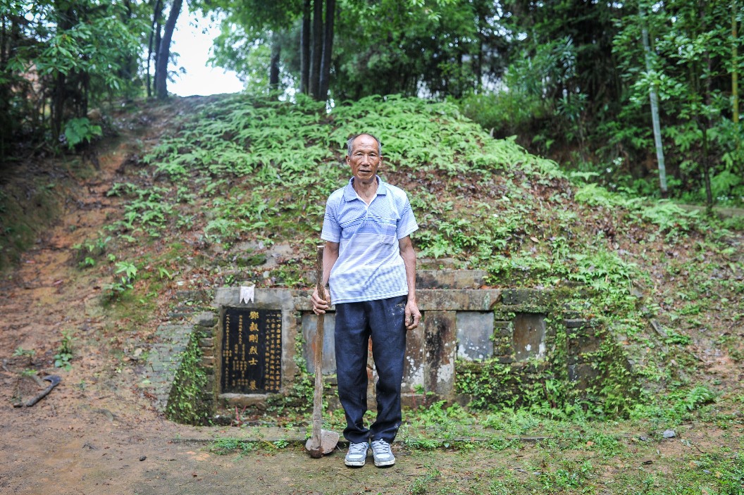 Xie Nanjing, 65, is a second-generation grave keeper for Deng Yigang, a Red Army martyr, in Shihan Village.