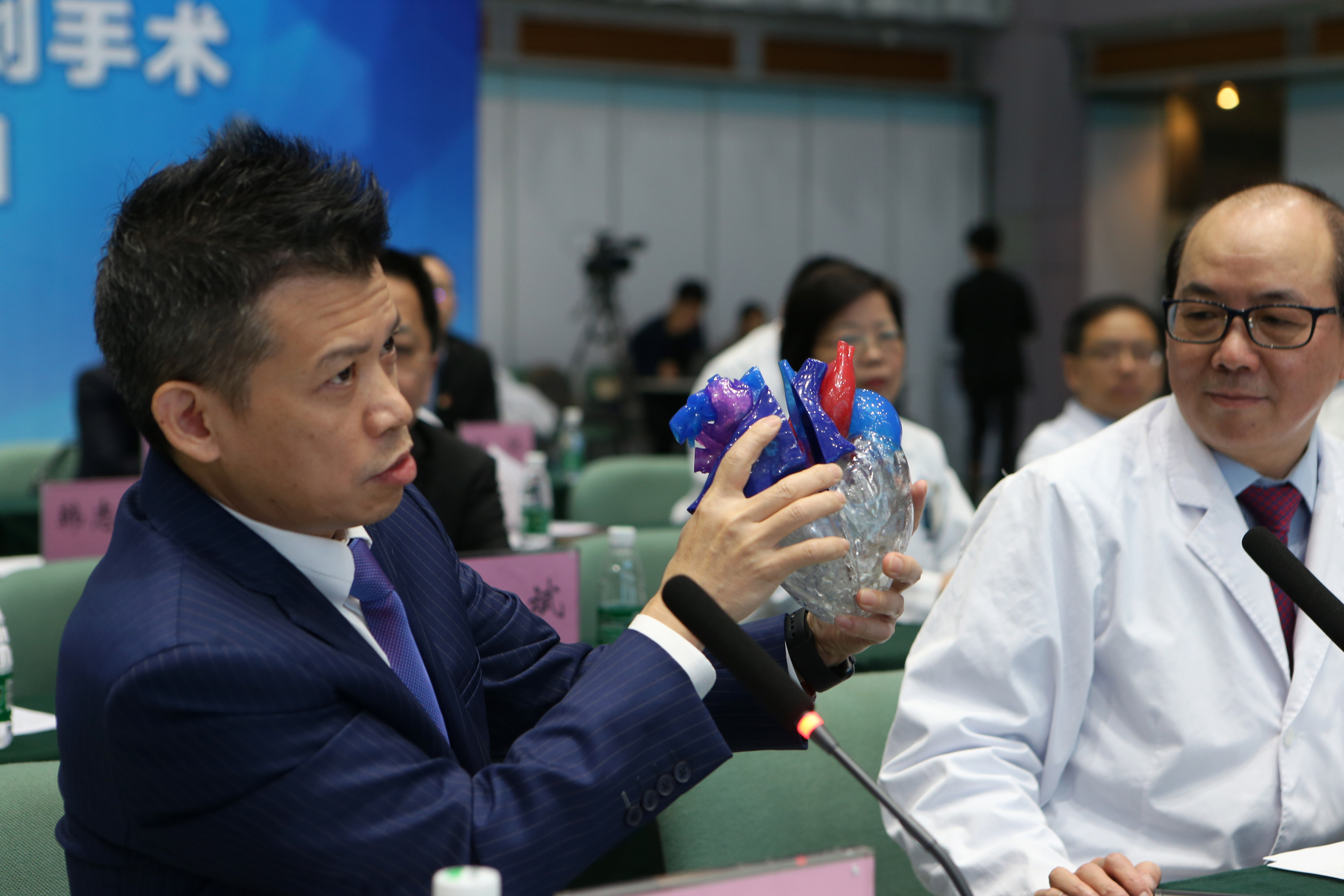 During the four-hour operation, Guo, the chief of the hospital's cardiac surgery unit, sat in front of a big screen, and gave instructions using a microphone and a 3D heart. Wearing a suit and a tie, he looked like Marvel character Doctor Strange.