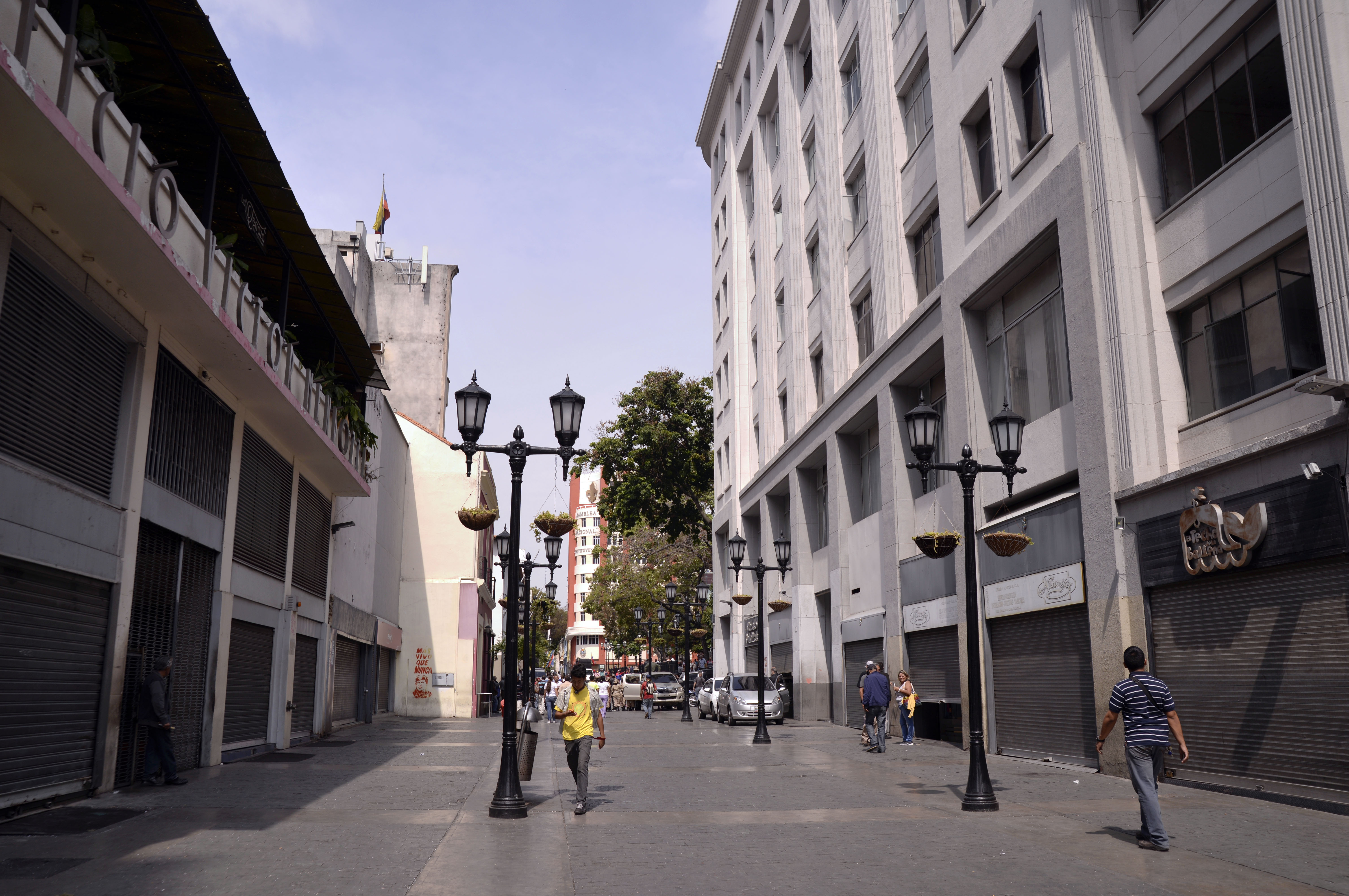 People walk in front of closed stores in downtown Caracas, Venezuela, March 8, 2019. (Xinhua/Marcos Salgado)