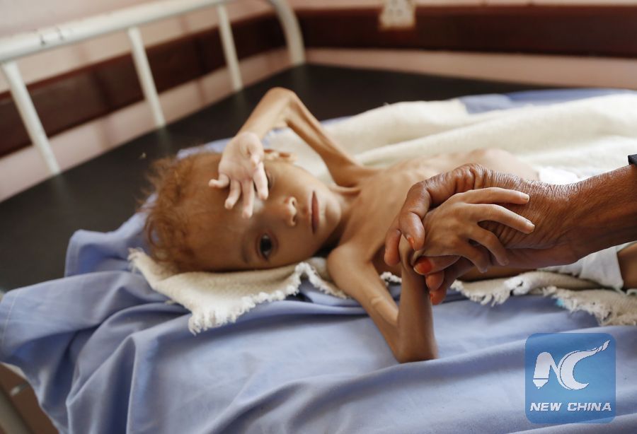 A malnourished child is seen at a hospital in Hajjah province, Yemen, Oct. 1, 2018. (Xinhua/Mohammed Mohammed)