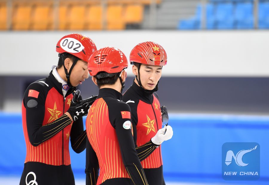 Olympic champion Wu Dajing (R) of Chinese short track speed skating team in a training session in Hailar, Inner Mongolia Autonomous Region, China on June 13, 2019. (Xinhua/Song Yanhua)