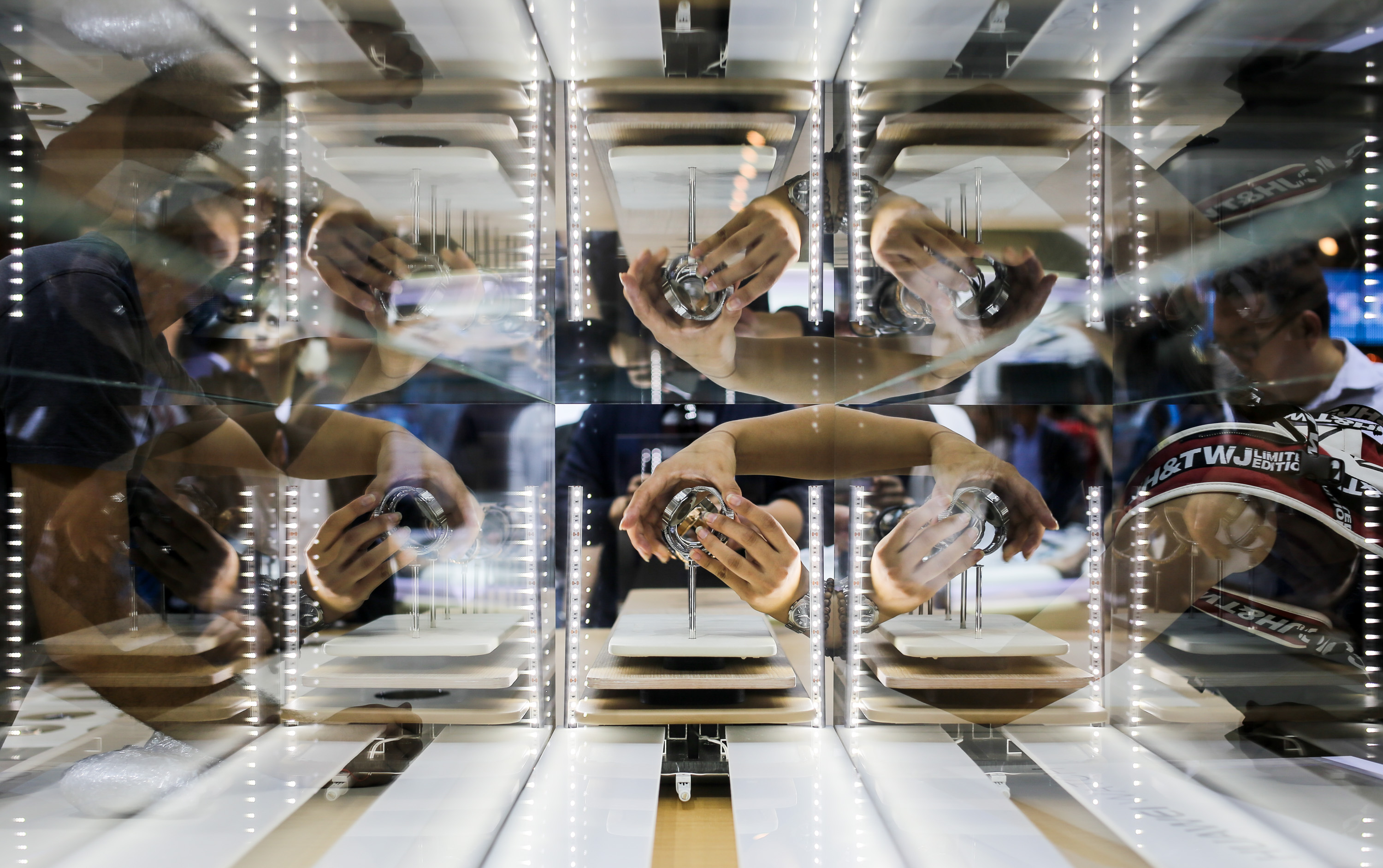 Visitors view smart watches at Huawei's stand during the 55th IFA consumer electronics fair in Berlin, Germany, on Sept. 4, 2015. (Xinhua/Zhang Fan)