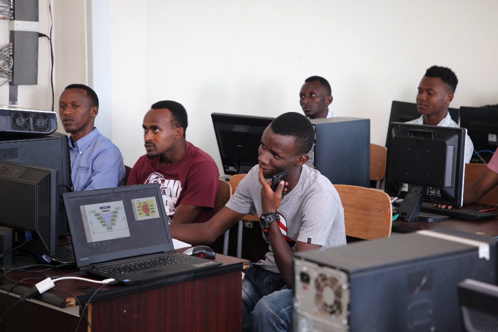 Students attend a class at the University of Tourism, Technology and Business Studies of Rwanda (UTB), in Kigali, capital of Rwanda, on Oct. 29, 2018. (Xinhua/Lyu Tianran)