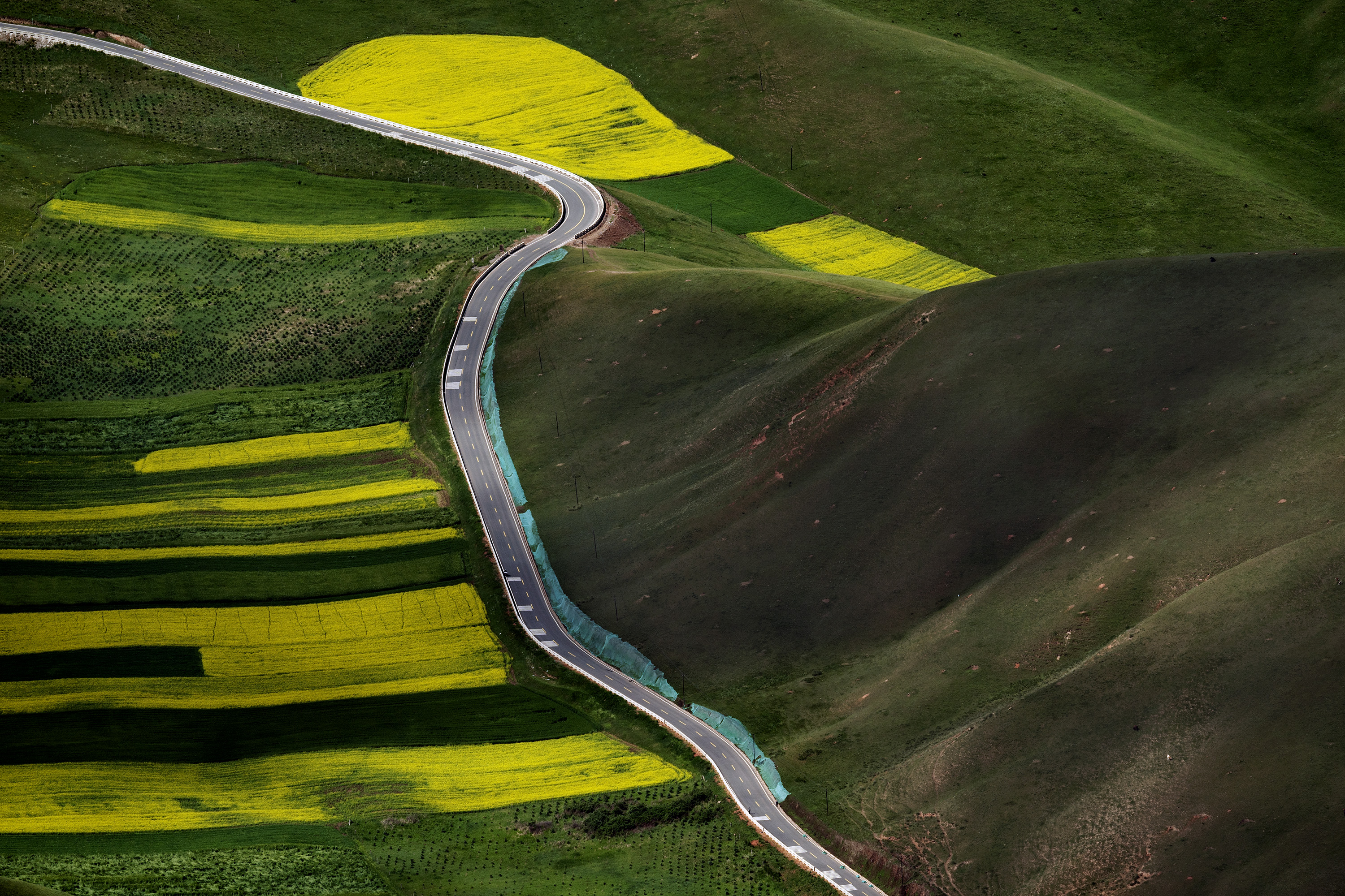 Cole flower fields are seen in Qilian County, northwest China's Qinghai Province. (Xinhua/Fei Maohua)