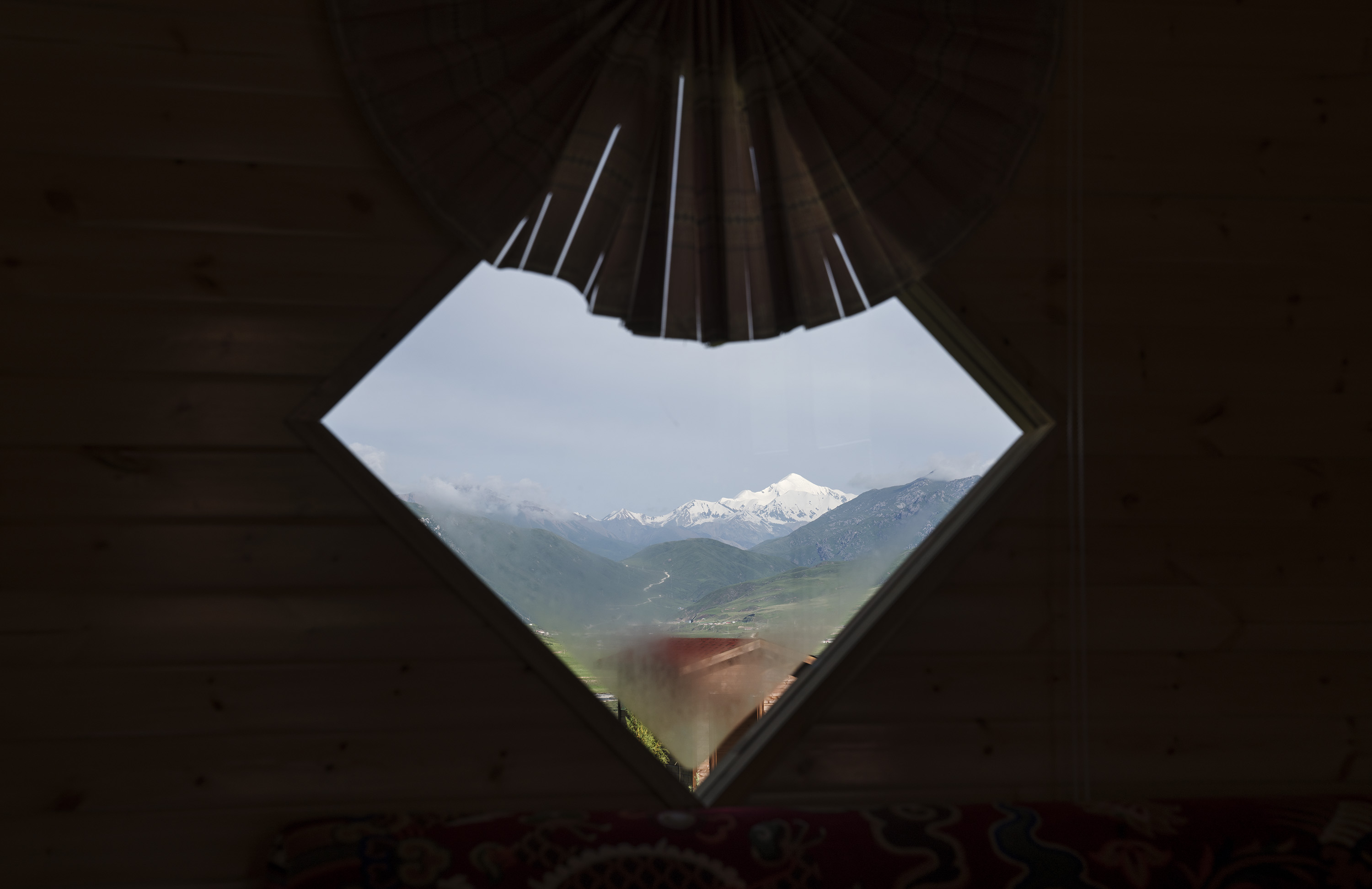 Aemye Ma-chhen Range seen from a window of a farmer's house in northwest China's Qinghai Province. (Xinhua/Fei Maohua)