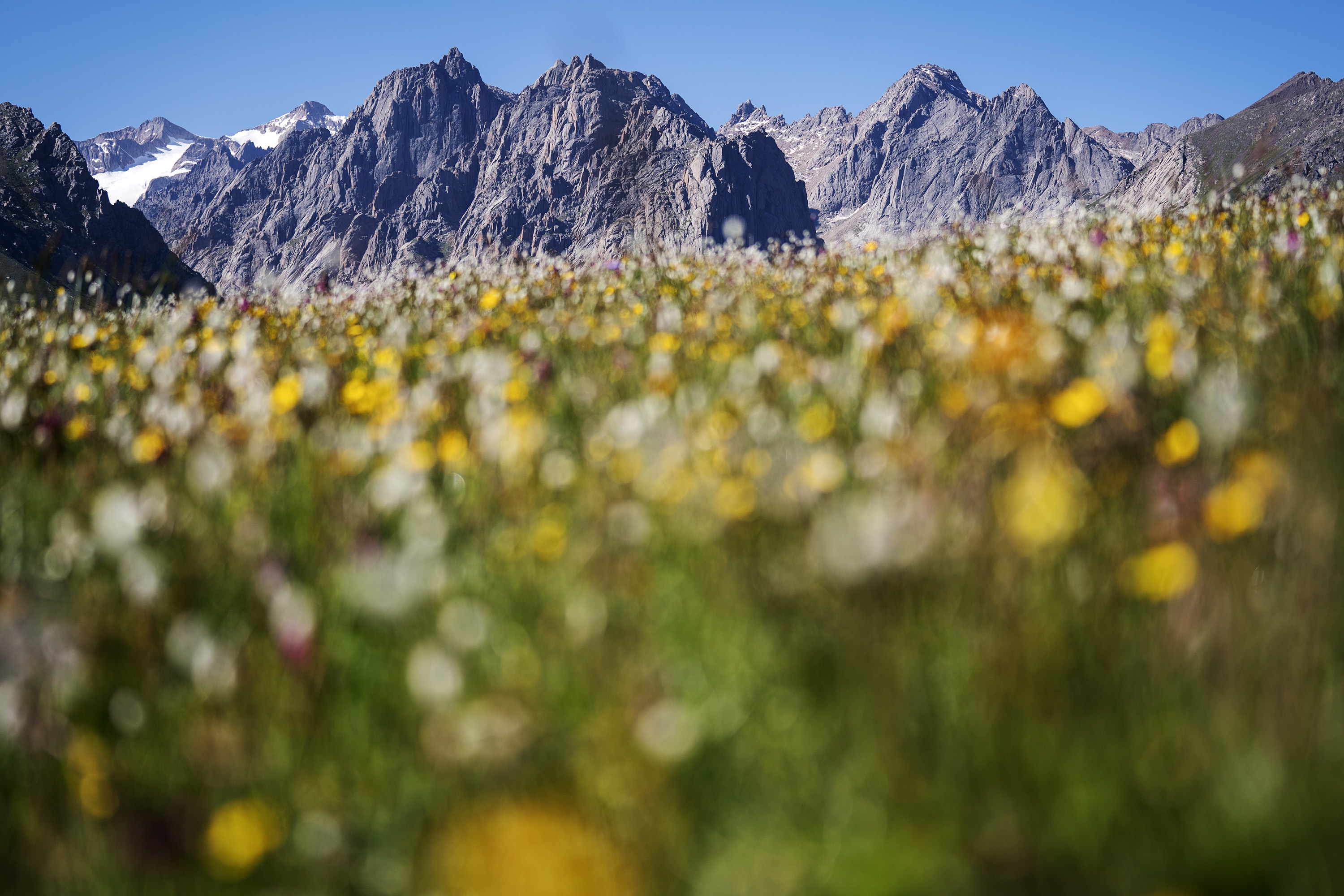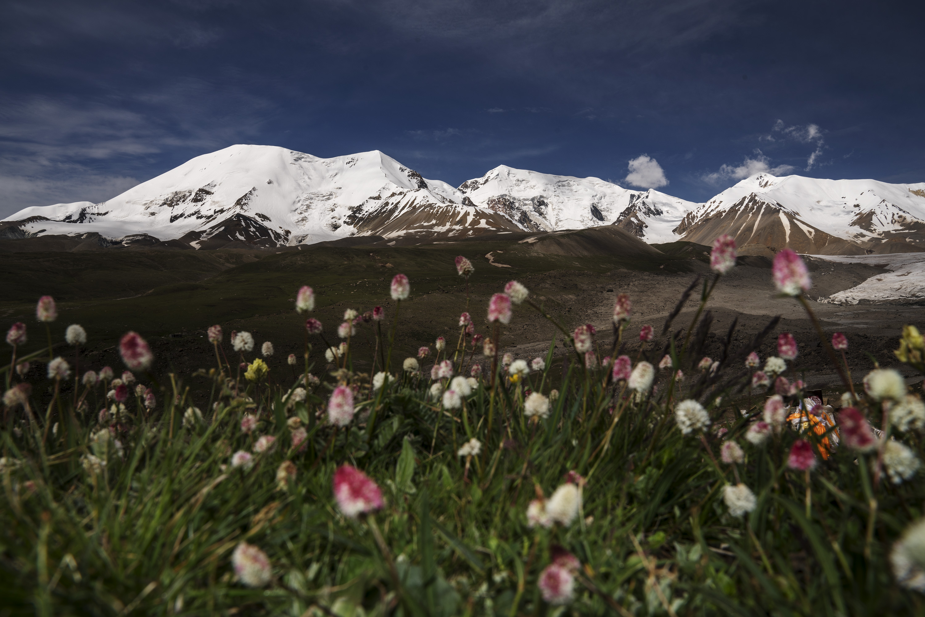 Wild flowers are seen at the foot of the Aemye Ma-chhen Range in northwest China's Qinghai Province. (Xinhua/Fei Maohua)