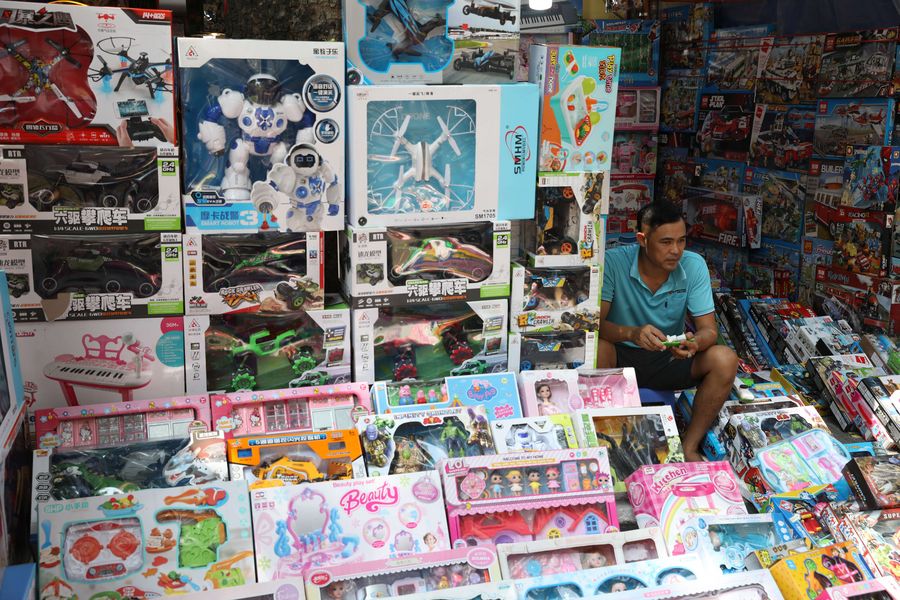 A local man sells toys, mainly Chinese ones, in Hanoi, capital of Vietnam, Sept. 13, 2019. (Xinhua/Wang Di)