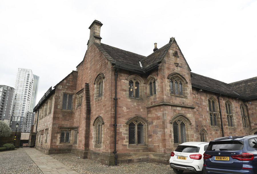 Photo taken on April 16, 2018 shows the exterior of Chetham's Library in Manchester, Britain. (Xinhua/Han Yan)