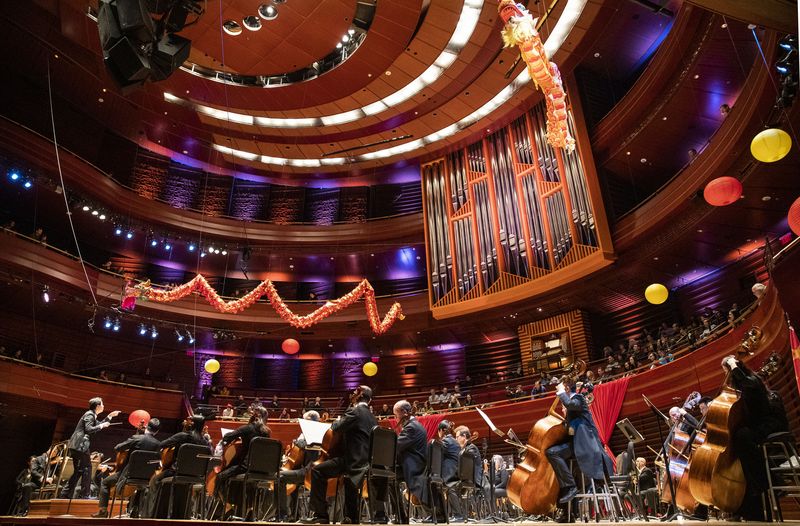Musicians from the Philadelphia Orchestra and Shanghai Philharmonic Orchestra perform during their Chinese New Year Concert in Philadelphia, the U.S. state of Pennsylvania, Jan. 29, 2019. (Xinhua/Wang Ying)