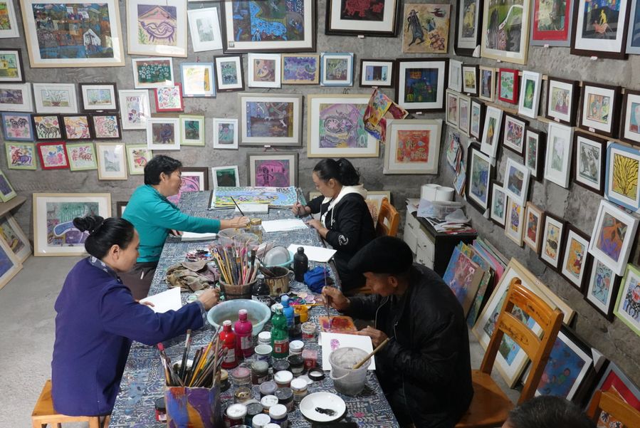 Now the craft has become a ready source of money for local farmers thanks to the growth of tourism. The average price of their paintings is around 100 yuan (about 14 U.S. dollars). Qijiang attracts more than 100,000 tourists from home and abroad every year, according to local tourism authority.