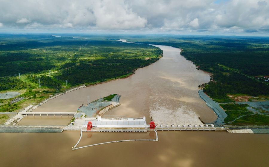 Aerial photo taken on Sept. 20, 2019 shows a view of the Lower Sesan II hydroelectric power station at Sesan District of Stung Treng Province, Cambodia. (Photo by Chen Gang/Xinhua)