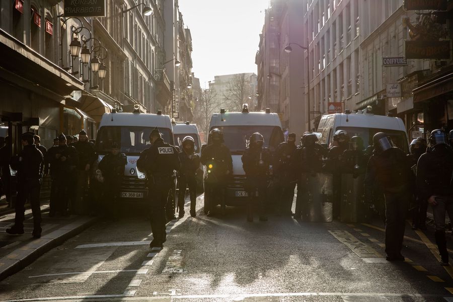 Police stand guard during a strike in Paris, France, Dec. 10, 2019.(Photo by Aurelien Morissard/Xinhua)