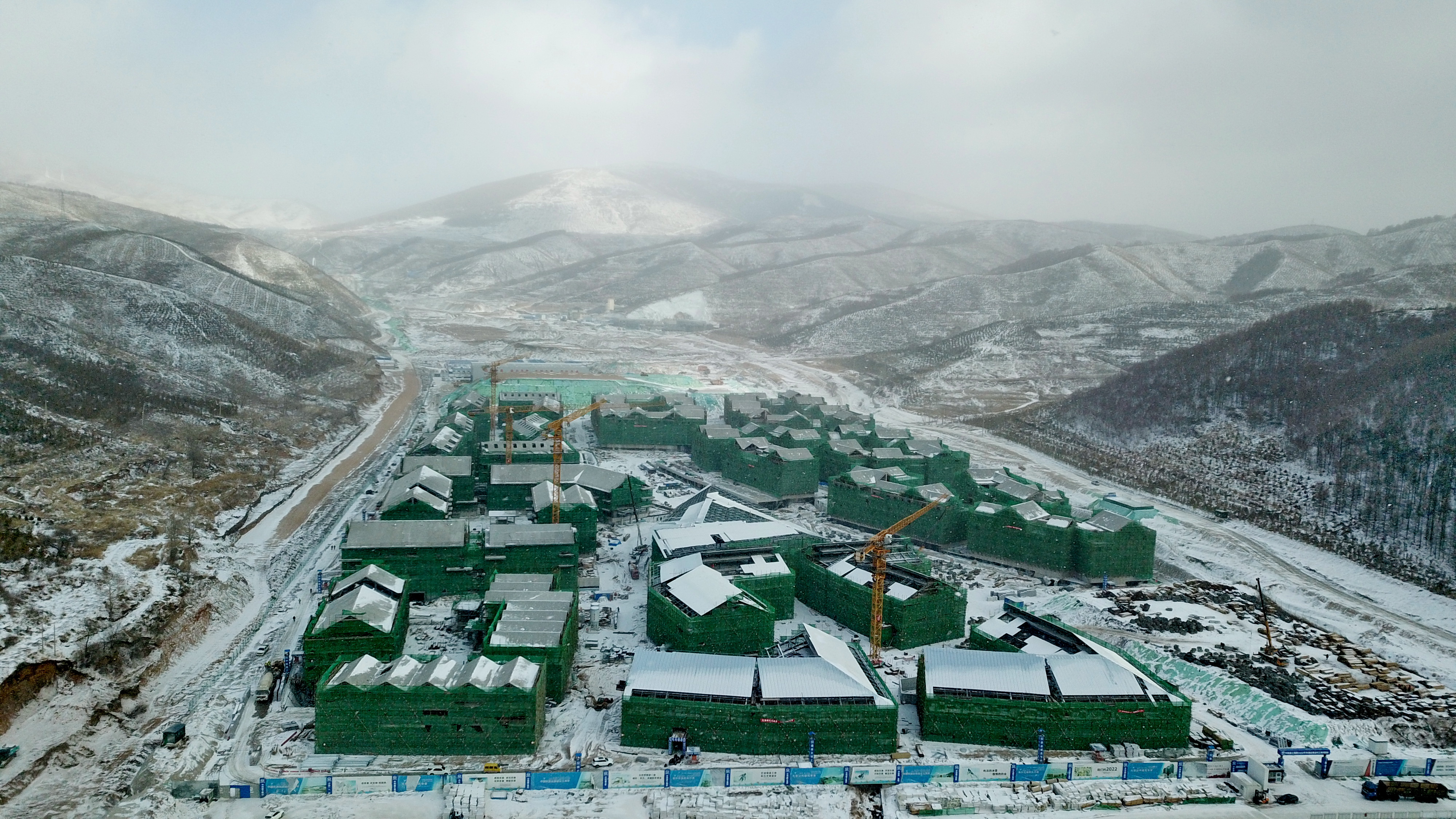 An aerial photo taken with a drone on Dec. 10, 2019 shows Zhangjiakou Winter Olympic Village in Chongli, north China's Hebei Province. (Xinhua/Yang Shiyao)