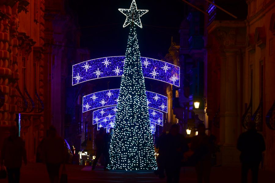 Colorful Christmas lights switched on in Valletta, Malta