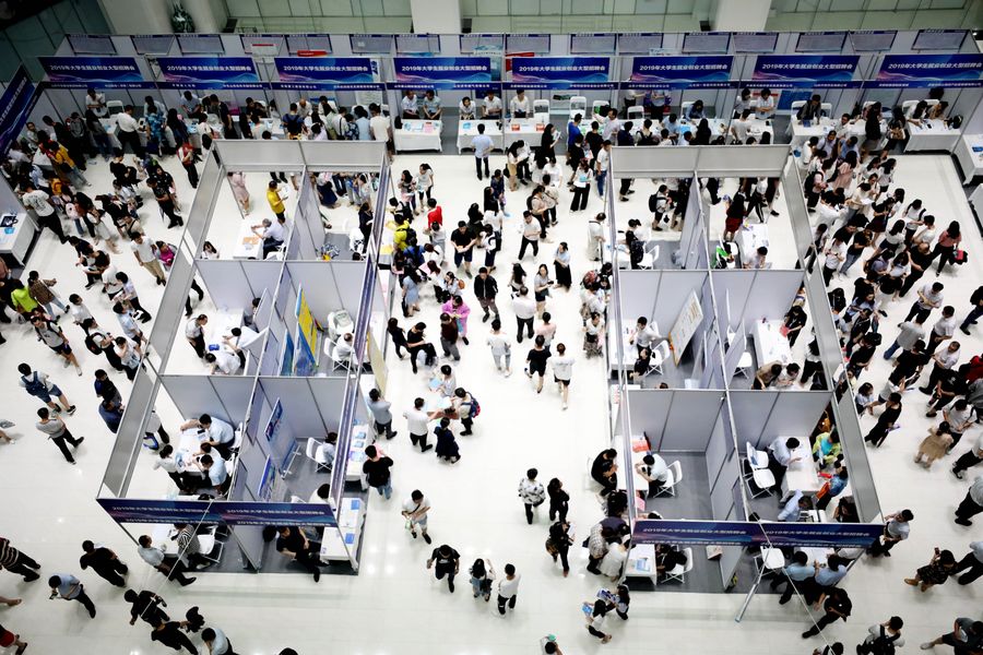 Job seekers attend a job fair aimed at university and college graduates in Jinan, east China's Shandong Province, July 6, 2019. (Xinhua/Zhao Xiaoming)