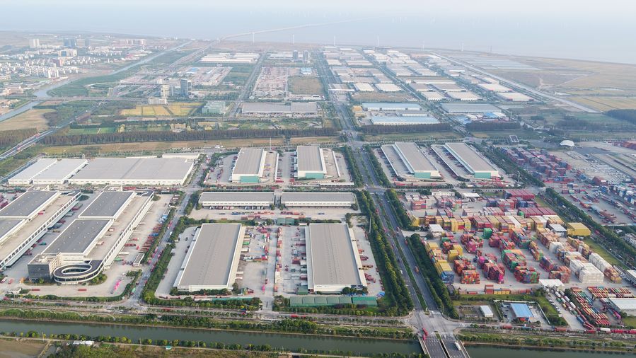 Aerial photo taken on Oct. 24, 2019 shows a view of the new Lingang area of the China (Shanghai) Pilot Free Trade Zone in Shanghai, east China. (Xinhua/Ding Ting)