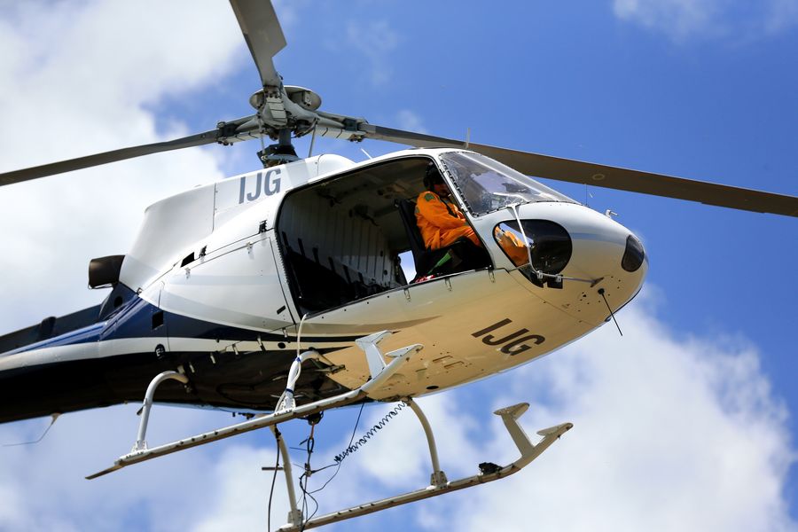 A rescue helicopter prepares to fly to the fire site in the north of Napier, New Zealand's North Island, Jan. 6, 2020. (Hayden Woodward/Handout via Xinhua)