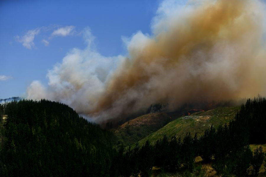 Photo taken on Jan. 6, 2020 shows the forest fire site in the north of Napier, New Zealand's North Island. (Hayden Woodward/Handout via Xinhua)