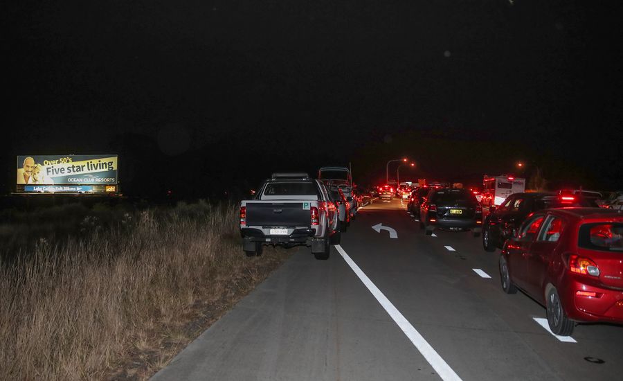 Residents drive to the temporary shelter built for bushfire evacuees near Taree, New South Wales, Australia, Nov. 10, 2019. (Xinhua/Bai Xuefei)