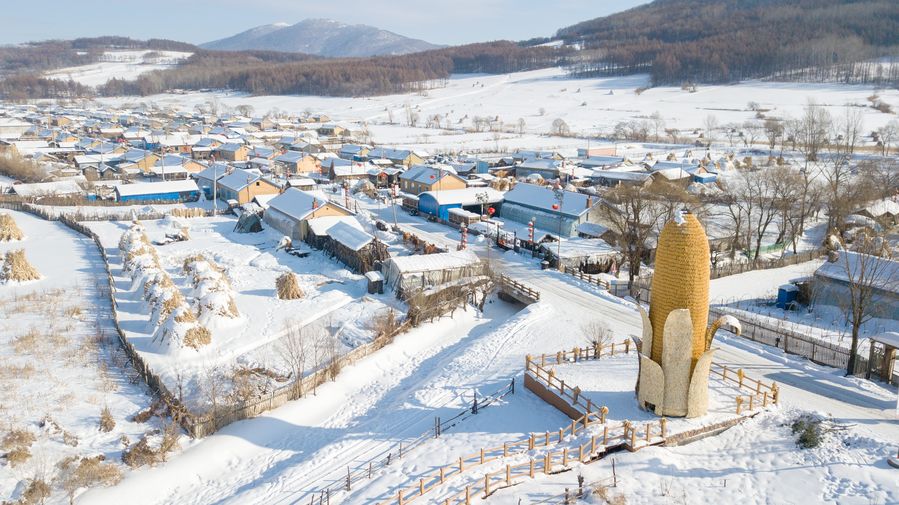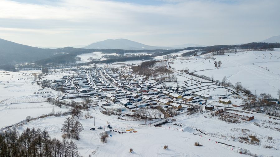 Aerial photo shows the snow scenery in Ma'anling Village of Shulan City, northeast China's Jilin Province, Jan. 21, 2020. (Xinhua/Zhang Nan)