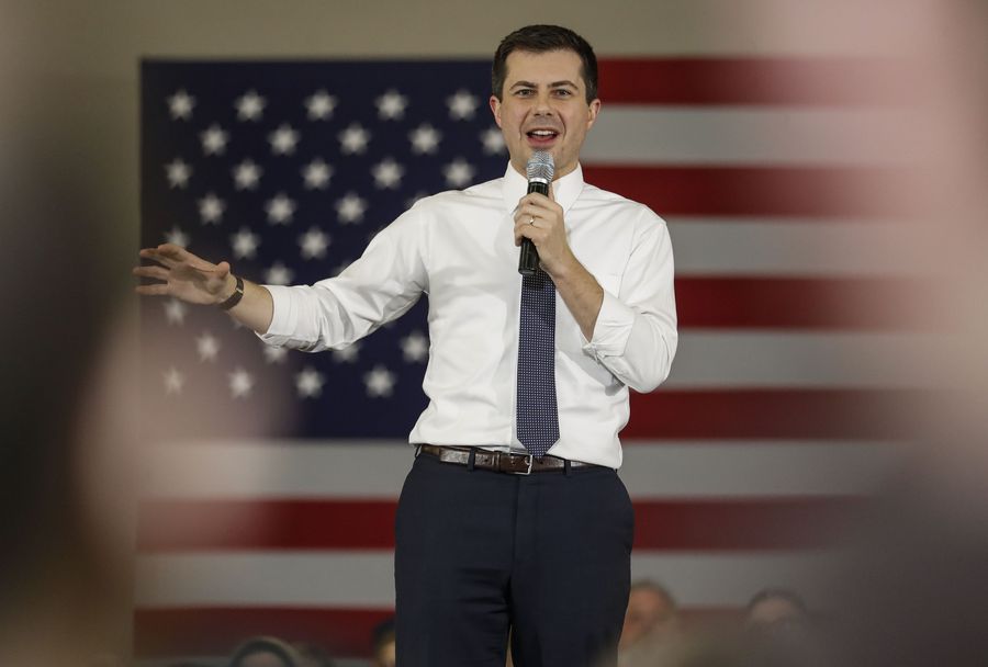 Democratic presidential candidate Pete Buttigieg, former mayor of South Bend, speaks at a rally in Cedar Rapids, Iowa, the United States, on Feb. 1, 2020. (Photo by Joel Lerner/Xinhua)
