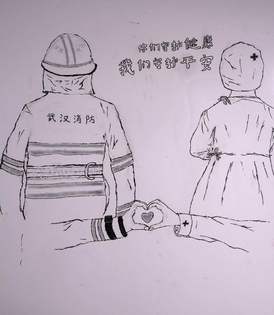 Doctor Wang Wei from Dalian drew a picture of the Dalian Railway Station and Wuhan Yellow Crane Tower. "They symbolize the 'heart-to-heart' solidarity between Dalian and Wuhan people."