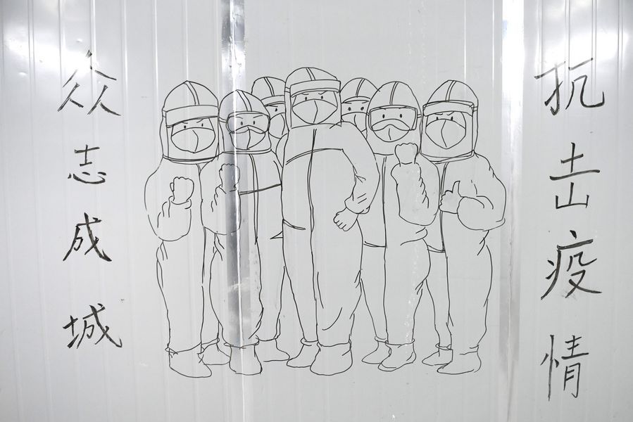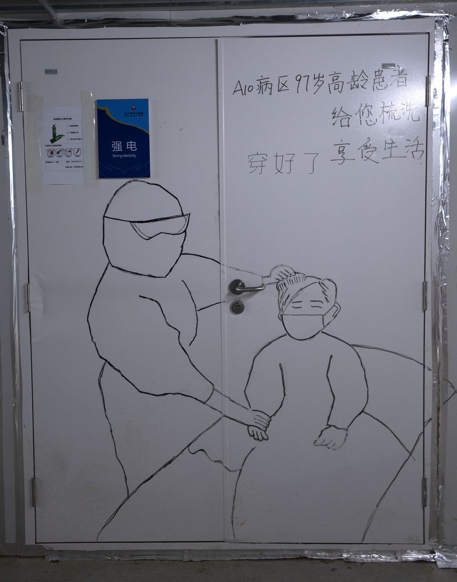 "I started to draw a cartoon on the corridor wall of ward A2 in Leishenshan. That helped me relieve pressure after a day's work," said the nurse. "More and more colleagues and patients come to see those pictures. I never expect them to become so popular."
