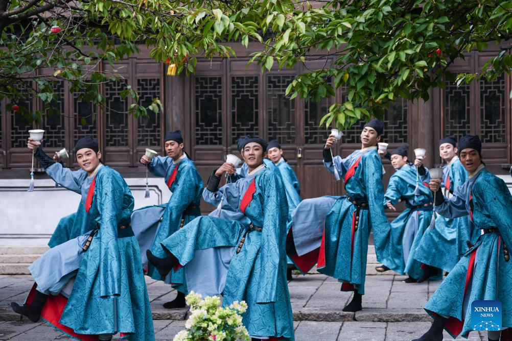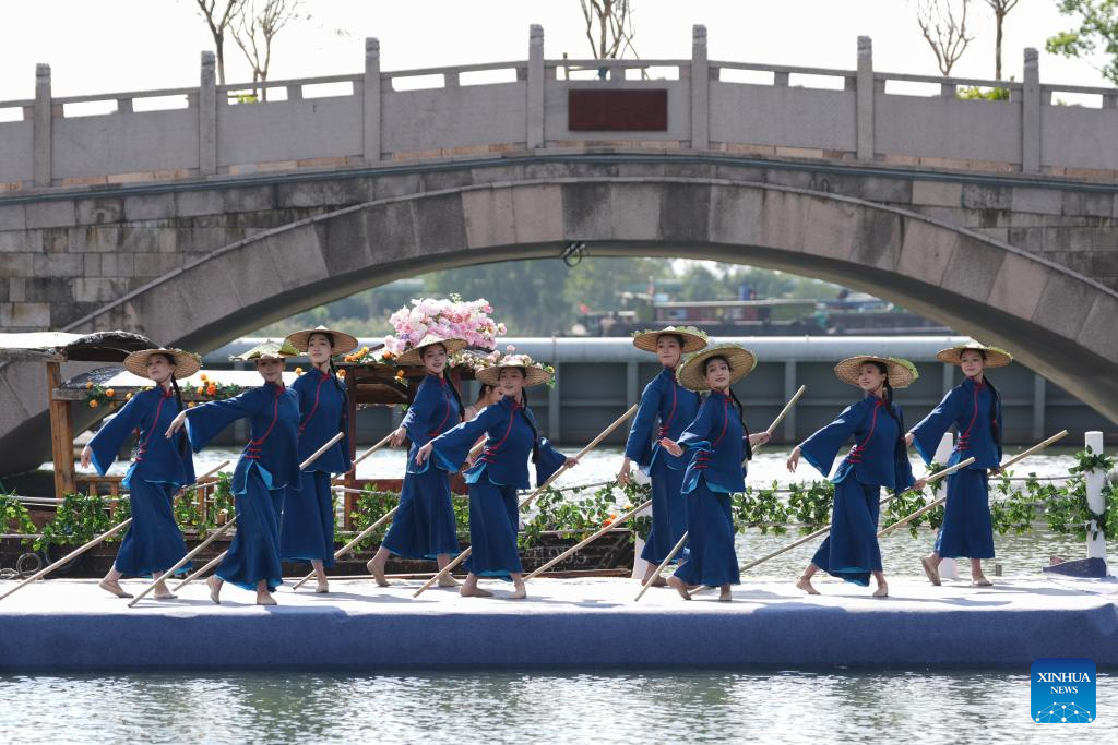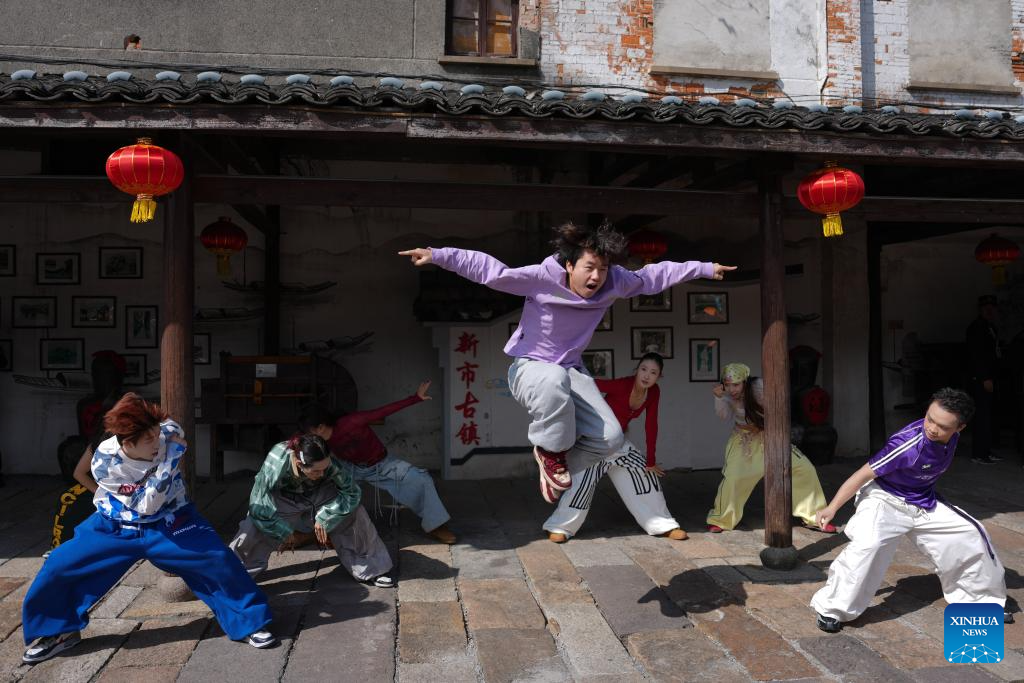 Dancers perform during a dance festival in the ancient town of Xinshi of Deqing County, east China's Zhejiang Province, on Oct. 24, 2025. (Xinhua/Huang Zongzhi)
