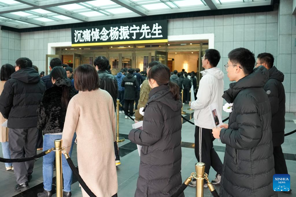 People pay their final respects to Chen Ning Yang at the Babaoshan Revolutionary Cemetery in Beijing, capital of China, Oct. 24, 2025. A ceremony was held in Beijing on Friday to pay final respects to late physicist Chen Ning Yang, a Nobel laureate, an academician of the Chinese Academy of Sciences and a professor with Tsinghua University. (Xinhua/Ju Huanzong)